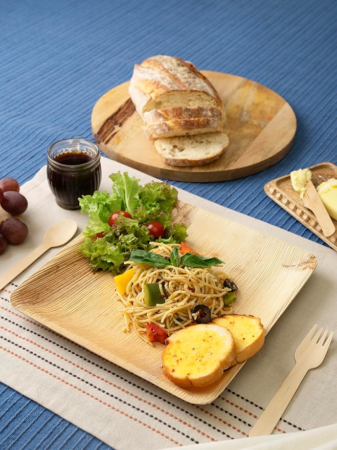 - SAFE FOR YOUR FOOD: Our eco friendly plates are specifically designed for food safety, able to withstand high temperatures without warping or releasing harmful substances. They are free from toxic chemicals, dyes, and coatings commonly found in plastic and paper plates, ensuring a pure and safe dining experience for you and your guests.