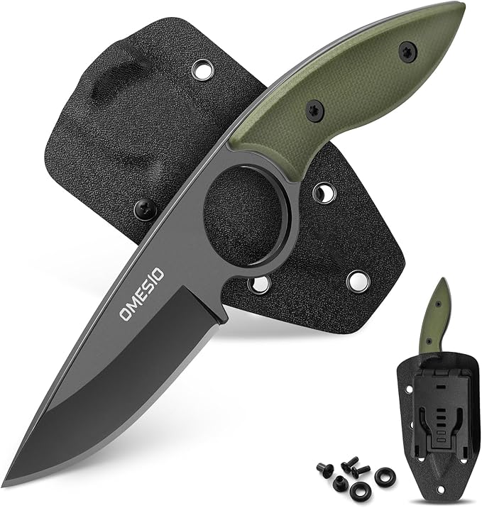 Omesio Fixed Blade Knife with Sheath, 6.92" Tactical Small Horizontal Carry Fixed Blade EDC Knife for Men Women with Kydex Sheath, Black Full Tang Blade G10 Ergonomic Handle, Ideal for Gifting