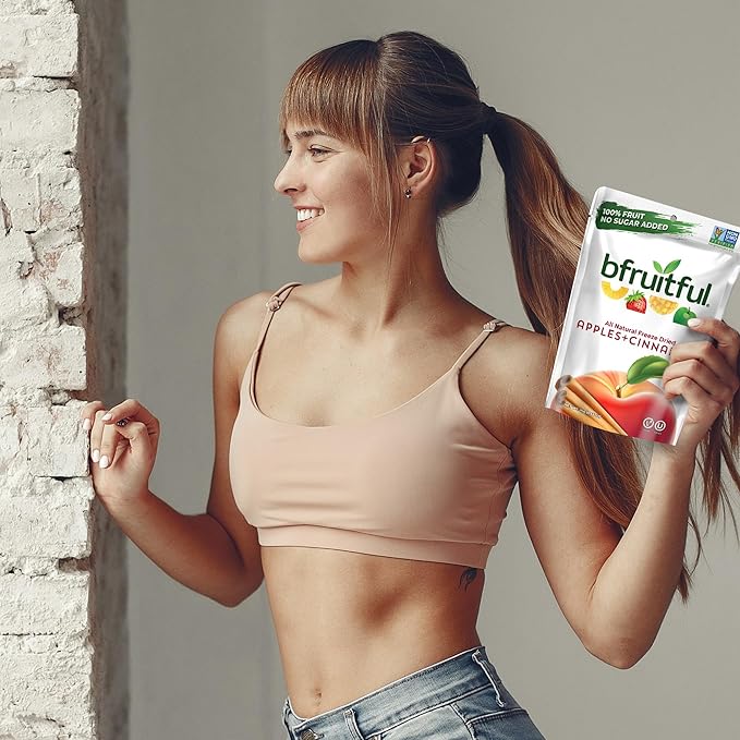 bfruitful Freeze-Dried Apple + Cinnamon, Freeze Dried Fresh Fruit Bites, Gluten Free, Vegan, Dairy Free, Kosher, No Sugar Added, Non GMO, Healthy Snacks, 0.56 oz Single-Serve Snack Packets, 12 Pack