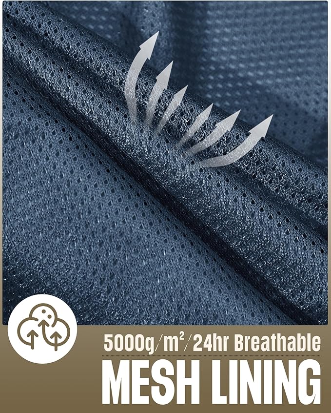 - Breathability: Packable rain jacket mens is breathable at 5000g/m2/24hr for excellent comfort. The raincoat for men lining is made of breathable mesh fabric, which allows air to circulate quickly and effectively absorbs water vapor to keep you dry and cool.
