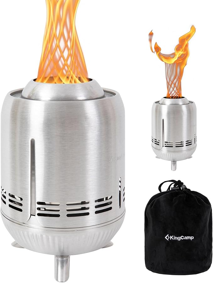 KingCamp Smokeless Fire Pit, Ultralight Stainless Steel Fire Pits Portable Camping Stove with Stand, Removable Ash Pan & Carry Bag for Camping Outdoor Bonfire Patio Backyard Chisel Steel