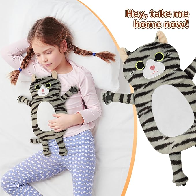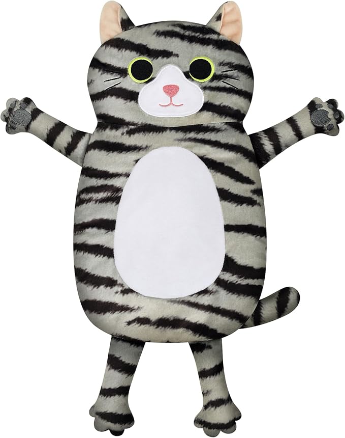 - An Adorable Gray Tabby Cat, A Cuddly Heating Pad: Simply put the heating pad into the microwave oven for 60 seconds, and you’ll be instantly surrounded by the cozy and moist warmth for as long as 20 minutes. Why not say goodbye to the messy unpacking procedure of traditional heat pad? We provide a whole new experience