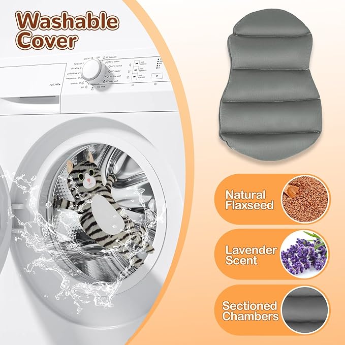 - Natural Filling & Safe Use: The lovable 9" x 17" washable cat cover comes with a 7" x 13" removable insert which is filled with flaxseed, releasing comfortable moist warmth and penetrating to your painful area. Lavender lend a floral and fresh fragrance to calm you, soothe you as well as relieve your headache and improve sleep. The cordless design are much safer and more convenient, and it could be freely taken to anywhere
