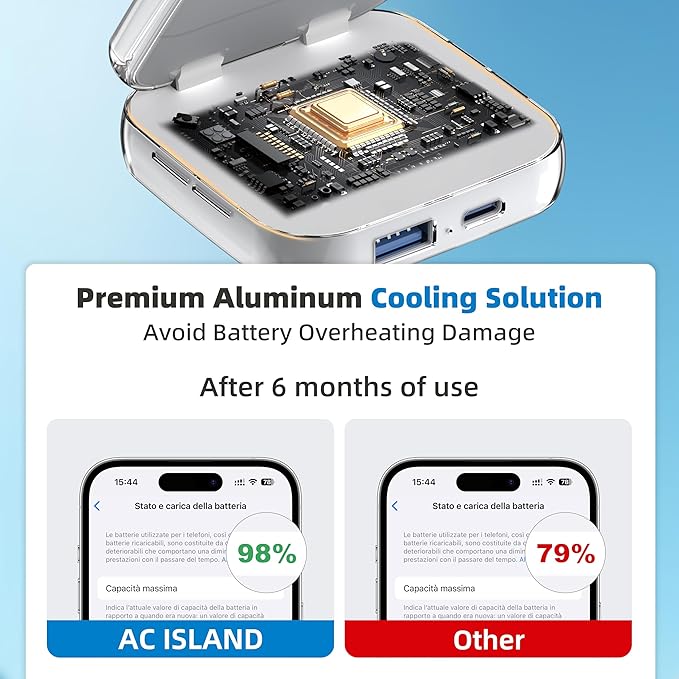 - Advanced Crystal-clear Shell & Aluminum Heat Dissipation: Crafted with a premium plastic and transparent resin, this charger is engineered for exceptional heat management. Featuring a stable base and an integrated aluminum alloy heat dissipation system, it delivers robust and reliable performance, ensuring safe and efficient charging for multiple devices simultaneously.