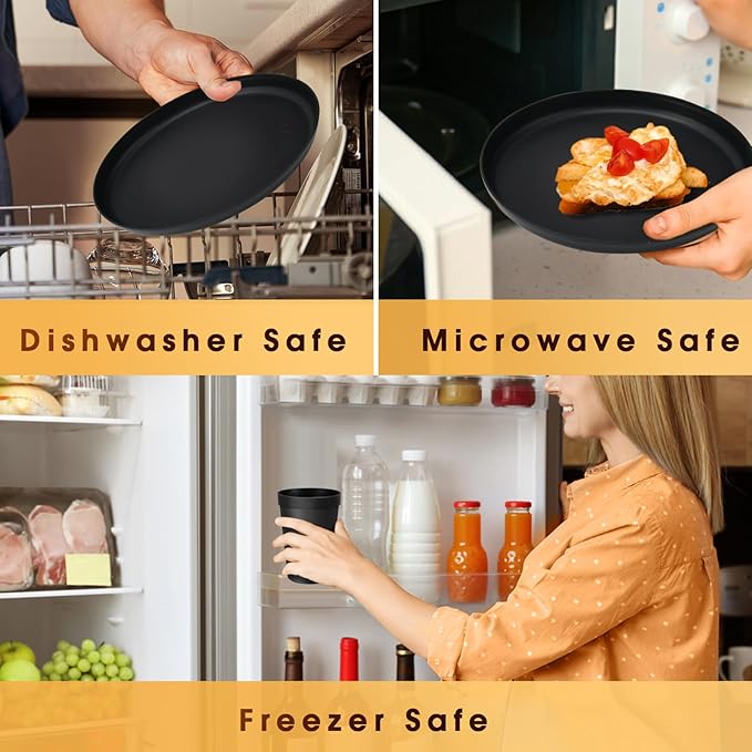 - Durable & Unbreakable: Made of BPA-free plastic, this reusable dinnerware set won’t chip like ceramic.