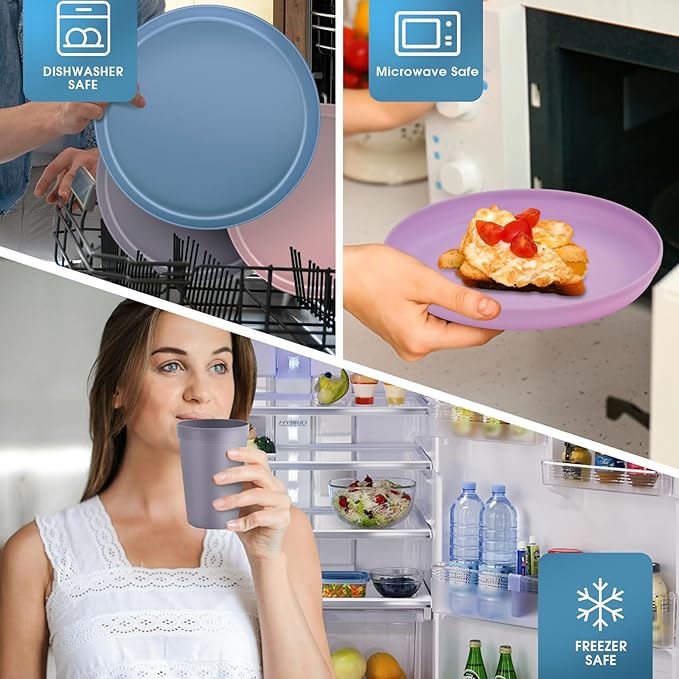 Pastel Plastic Dinnerware Set – 40-Piece Reusable Plates and Bowls Set for 8, Unbreakable Dishes with Cups, Knives, Forks, Spoons for Camping, Picnic, Kids, and Everyday Use