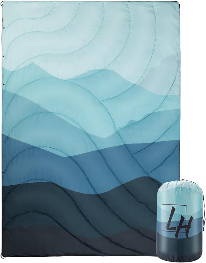 Outdoor Puffy Camping Blanket, Lightweight Down Alternative Puffy Waterproof Stadium Blanket with Portable Bag, Lightweight Camping Blanket for 2 People, Cold Weather, Sports, Travel, Car, 79*54 inch