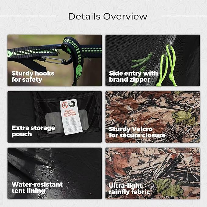 - 3 in 1 Function Hammock - The Camping Hammock tent is multi-functional to be used as a hammock; Rotate the hammock, It can be used as an ordinary tree hammock; When using with the rain fly, the hammock becomes a heavy rain waterproof tent with nice air flow.