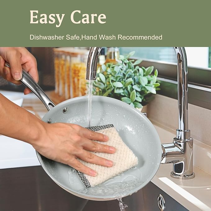 - Exceptional Nonstick Surface: Our nonstick frying pans feature a premium ceramic coating that allows for effortless food release. Enjoy cooking your favorite meals without worrying about sticking, making cleanup a breeze.