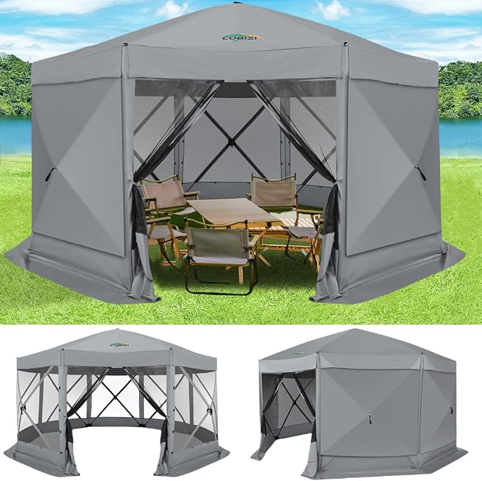 COBIZI 15x15ft Extra Large Pop-Up Gazebo Canopy Tent with Mosquito Netting, Spacious Easy Set-Up Screened Shelter, Durable Outdoor Pavilion with Ground Stakes, Perfect for Patio, Backyard, and Lawn