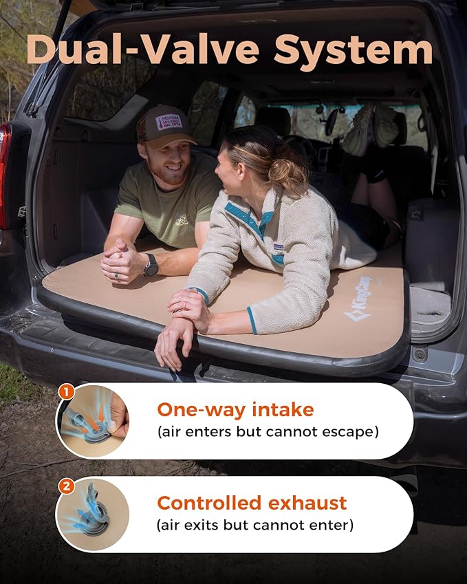 - EASY-TO-USE VALVE – Features a two-in-one valve design: open the first layer to inflate without air loss, and open both layers for quick deflation. This intuitive system enhances convenience, making it the perfect inflatable camping mattress for beginners and experienced campers alike.