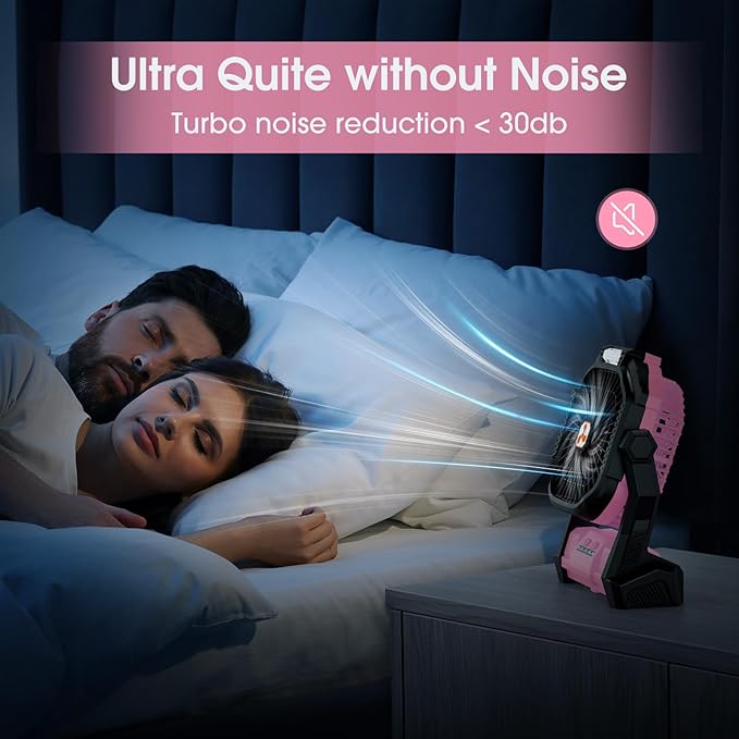 - Strong Wind & Quiet Design for Battery Powered Fans: This portable fan comes with 4 adjustable wind speeds to meet different needs and keep you cool at home or for travel like camping. The brushless motor and upgraded fan blades operate efficiently with minimum noise, and you will have a calm and peaceful experience thanks to its noise level of ≤ 30Db