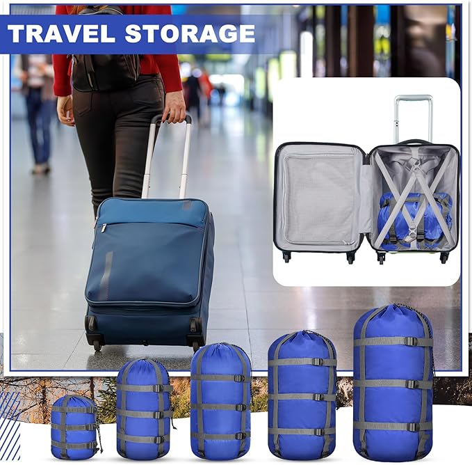 - Versatile Color and Size: our compression bags assortment provides 5 sizes to fit your daily demands; Sizes from 6L (around 10.6 x 6.7 inches), 15L (around 17.3 x 9.1 inches), 25L (around 20.9 x 10 inches) to 35L (around 22.1 x 10.3 inches), 45L (around 23.2 x 12.2 inches), offering versatility and adaptability; Distinct blue color for easy distinction, enhancing your travel journey both visually and practically