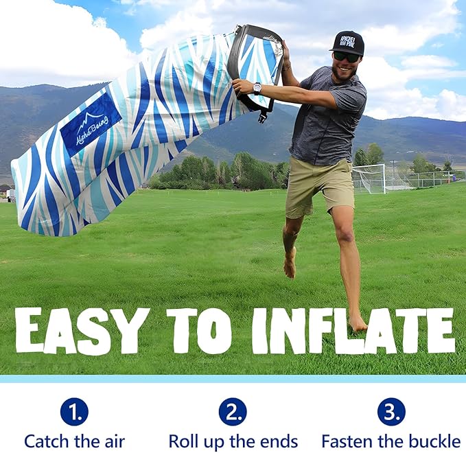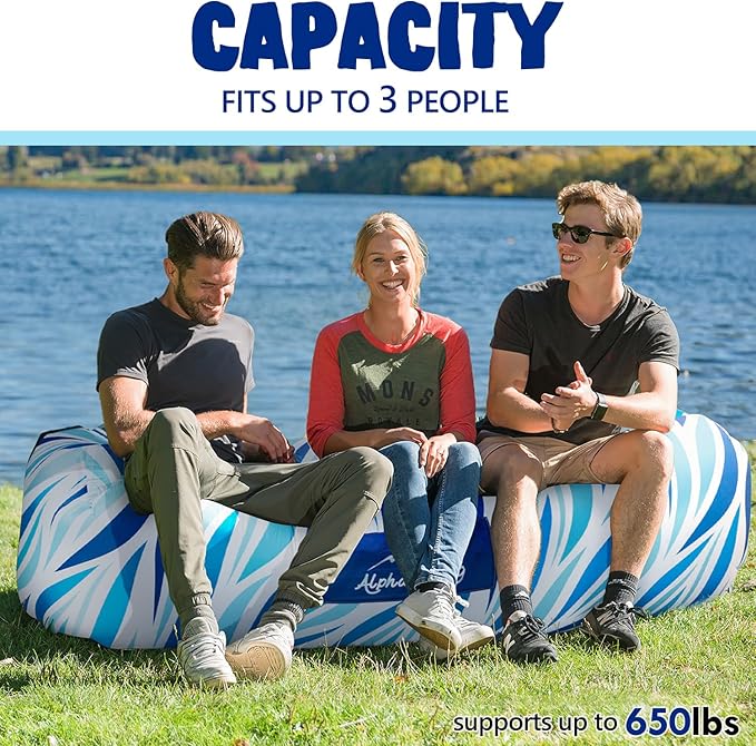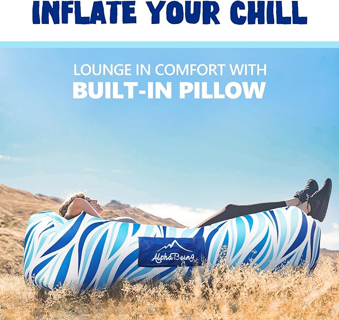 - Easy Inflation Design -- No pump required for AlphaBeing air lounger. Just a few scoops of air and this inflatable lounger is ready to hangout in. This is a must-have for any BBQ, beach, hike, concert, or camping trip. Folding to 12"x 8"x 4"and fitting in its own carrying bag with shoulder strap, this air sofa is ready to be taken anywhere with you.