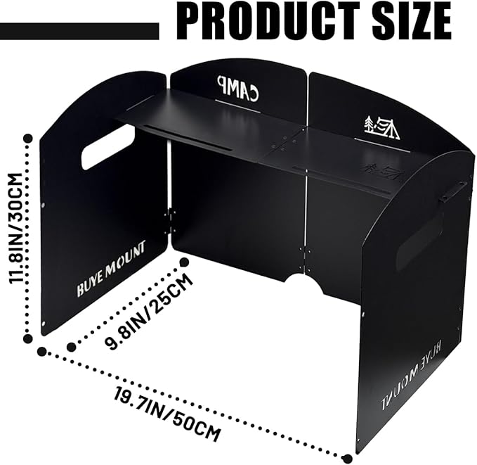 - FITTING SIZE FOR EFFICIENCY: Measuring 19.7 x 9.8 x 11.8 inches when unfolded, our windshield is designed to increase efficiency while providing extensive protection from the elements. Whether you're cooking outdoors or indoors, you'll experience the convenience of saving fuel while enjoying a more comfortable cooking environment.