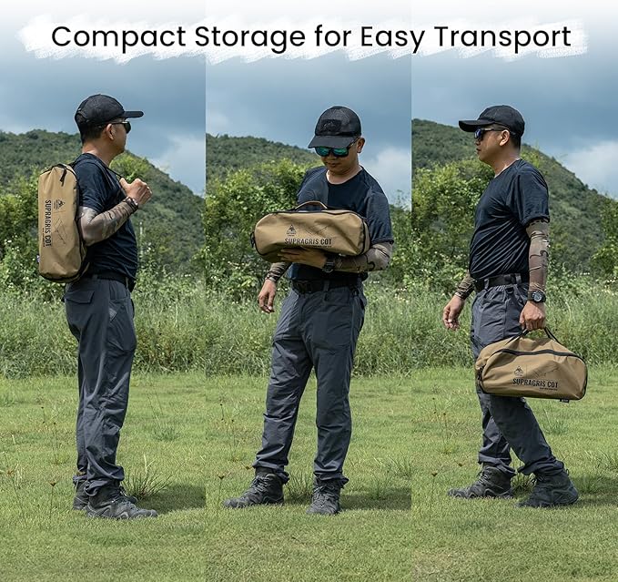 OneTigris SUPRAGRIS Camping Cot, Support Up to 400lbs, Lightweight Comfortable Folding Bed for Camping, Hiking, Backpacking, Travel, Car Trips, Office Nap