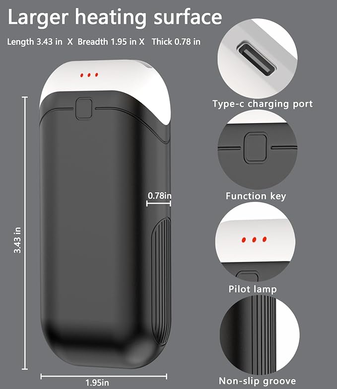 - 【Smart Temperature Sensing】 - Hand Warm features an integrated intelligent AI temperature control chip that provides 3 levels of precise heat release control, feedback and guidance. By constantly analyzing and identifying the temperature between the hand warmer and the hand, ensure that the temperature is always in the temperature gear you set for optimal comfort and safe heating