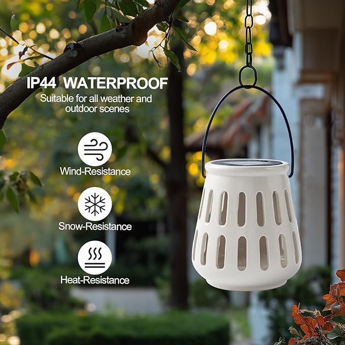 - 【Weather resistance】 The decorative solar lantern has excellent durability and can withstand various weather conditions throughout the year. Our cermaic solar lights can resist corrosion, high temperatures, oxidation, erosion, and cold.