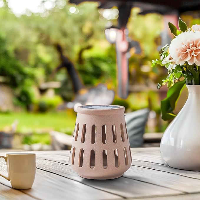 - 【Versatile Placement Options】 With a convenient handle, this ceramic solar light offers three placement options: hang it, carry it, or place it on a table. Ideal for outdoor table top decor, patio, porches, yards for decoration, or as a centerpiece for outdoor gatherings.