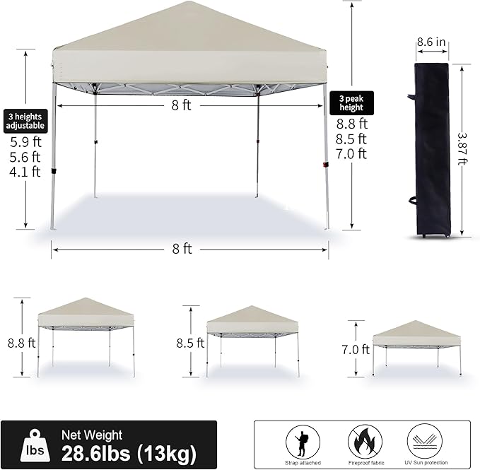 - Spacious & Versatile Design - Measuring 8X8 FT, this canopy provides ample space for you, your friends, and family to enjoy a variety of outdoor activities and gatherings. Its spacious design makes it ideal for parties, commercial events, and a wide range of other outdoor occasions, ensuring everyone has room to relax and have fun.