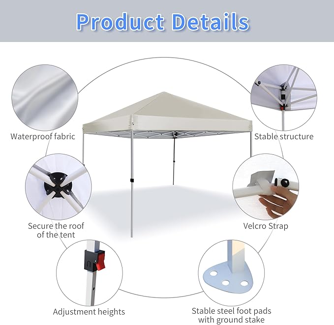 - Adjustable Height & Angle - With adjustable straight leg heights, this canopy offers the flexibility to adapt to different terrains and usage scenarios. Whether you're hosting a party on a sloped lawn or setting up for a commercial event, you can easily customize the height and angle to meet your specific needs.
