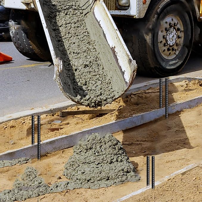 - 【STRONG GRIP】The heavy duty metal rebar stakes feature uniform ribs that enhance the bonding properties between the stakes and the concrete. Furthermore, these textured surfaces ensure that the stakes are securely embedded in the ground, providing improved grip.