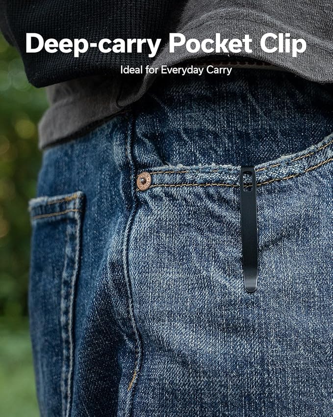 - Deep Carry Pocket Clip: This edc knife comes with a deep carry clip for discreet everyday carry