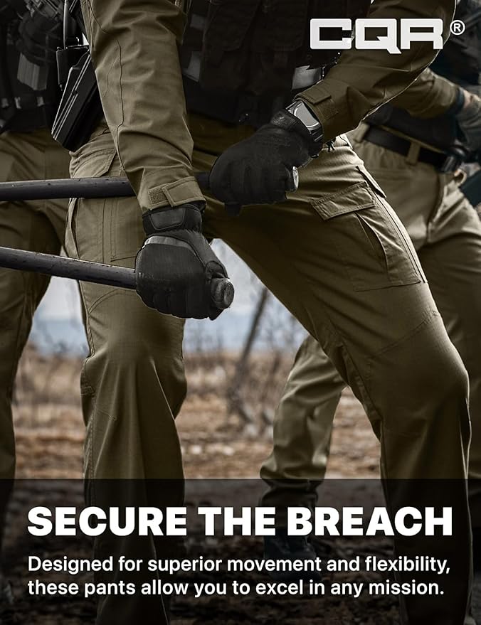 CQR Men's Flex Ripstop Tactical Pants, Water Resistant Stretch Cargo Pants, Lightweight EDC Hiking Work Pants