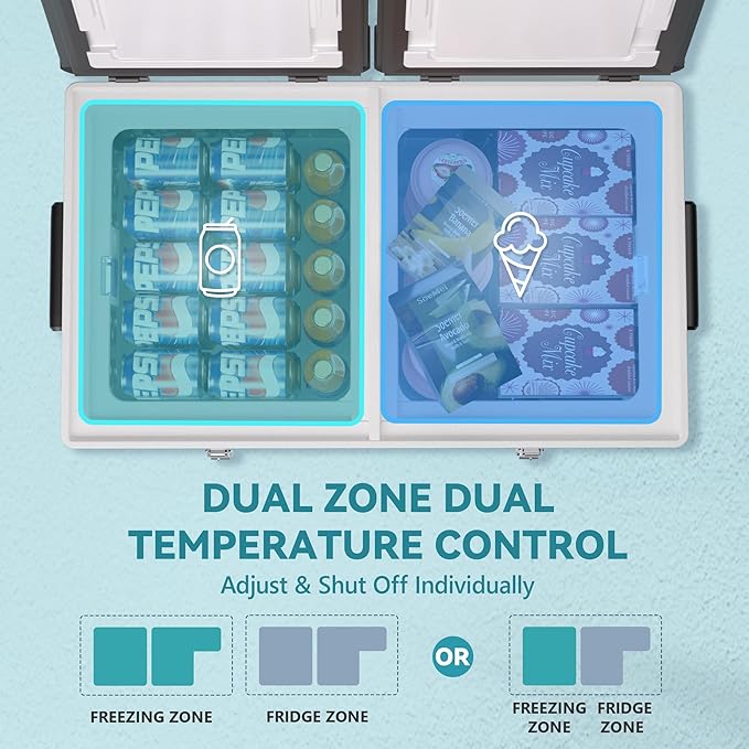 EUHOMY 12 Volt Refrigerator, 69QT Electric Cooler Powered by SECOP, Dual Zone Car Refrigerator -4℉~68℉, 12V Fridge 12/24V DC 110-240V AC, Portable Freezer for Camping, Travel, Boat