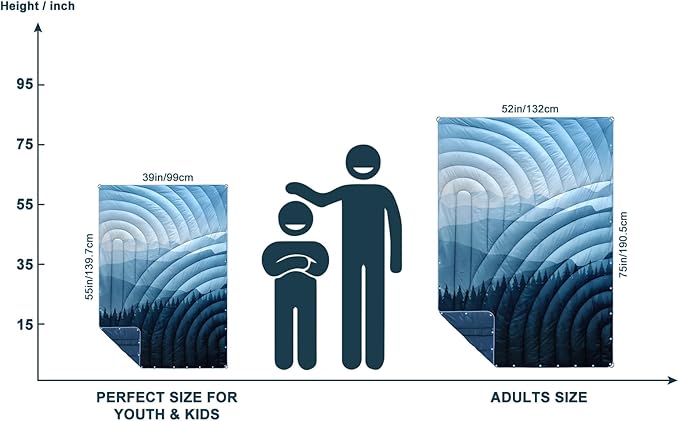 - LIGHTWEIGHT AND PACKABLE: The camping blanket measures 39*55 inches and measures 6*9 inches when packed. Weighing only 1.2 pounds, the products you buy include a camping blanket and a portable storage bag. This will be the ideal blanket for your outdoor, hiking and camping adventures.
