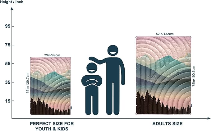 - LIGHTWEIGHT AND PACKABLE: The camping blanket measures 39*55 inches and measures 6*9 inches when packed. Weighing only 1.2 pounds, the products you buy include a camping blanket and a portable storage bag. This will be the ideal blanket for your outdoor, hiking and camping adventures.