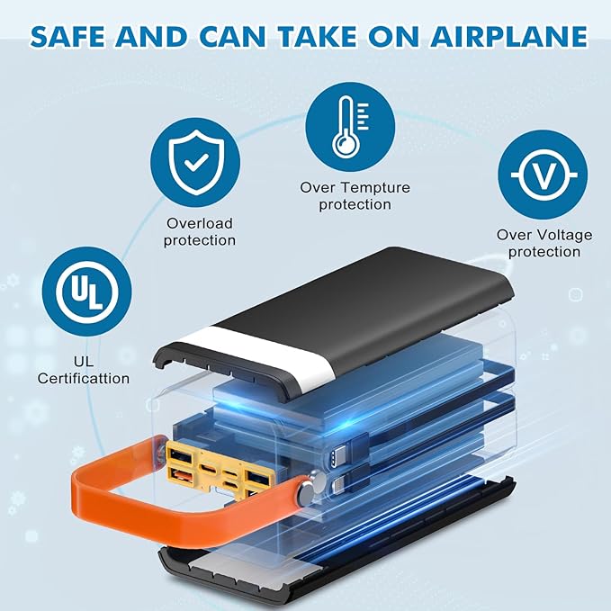 - Versatile LED Flashlight & Handy Strap-Perfect for outdoor adventures, this power bank features built-in LED flashlights with 4 modes (lighting, strobe, soft, SOS), ideal for camping, emergencies, and signaling. Includes a convenient hand strap for easy attachment to your backpack during trips.