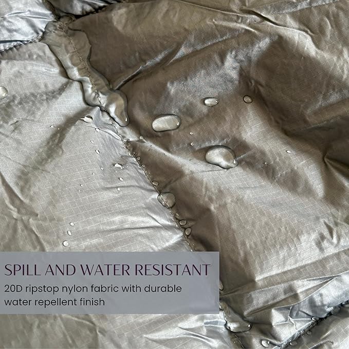 - DURABLE & WEATHER-READY – This camp blanket features a durable 20D ripstop nylon outer shell that resists spills, rain, dirt, sand, and pet hair.