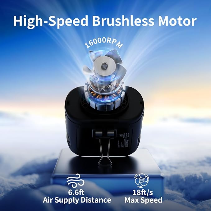 - 【5 Levels of Powerful Wind Adjust】This Electric USB fan has a high-speed brushless motor with a maximum speed of up to 16000RPM and blows at most 18mf/s strong airflow, cooling down in a second. With 5 gears and adjustable wind speeds from natural to strong, it can be set to various modes according to your needs when you are using it. The maximum wind speed persists for 8 hours, whereas the minimum wind speed can endure for as long as 40 hours. It is an ideal choice for workers who need the strong wind in high-temperature environments