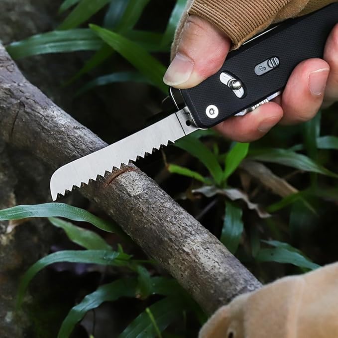 - 2·6 Tools Pre-Installed, Plus 2 Bonus Tools: Comes with 6 pre-installed tools (1.1/4" Bit Driver 2.D2 Blade, 3.File + Ruler + Flat Head Screwdriver, 4.Awl + Threader, 5.Tapered Saw. 6.Scissors) and 2 additional bonus tools (Comb + Pen, Tweezers & Needle), giving you even more versatility right out of the box.