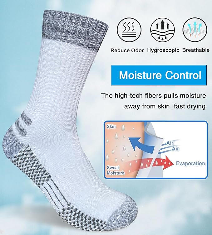 • Wicking Socks for Men: Made of high quality polyester and moisture control fibers for extra softness, comfort and durable while retaining sweat-wicking. Mesh plates help to ventilate release the heat, keep your feet cool and dry