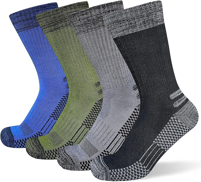 Men's Crew Work Boot Socks Thick Cushioned Moisture Wicking Hiking Sock 4 Pairs