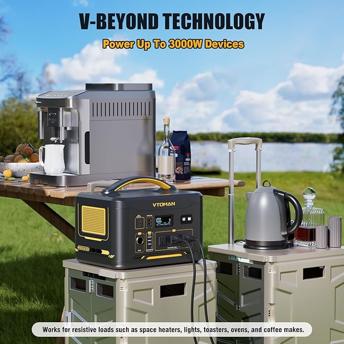 - 【1500W Constant-Power Power Station】VTOMAN Jump 1500X power station with 3 AC outlets for rated 1500W(Surge 3000W) output power. In addition to being able to power devices below rated 1500W like most power station do, Jump 1500X portable power station will also output 1500W constant-power when powering over 1500W appliances instead of turning off its output. It provides you an alternative emergency solution when powering appliances over 1500W, such as water heaters, space heaters, ovens, etc.