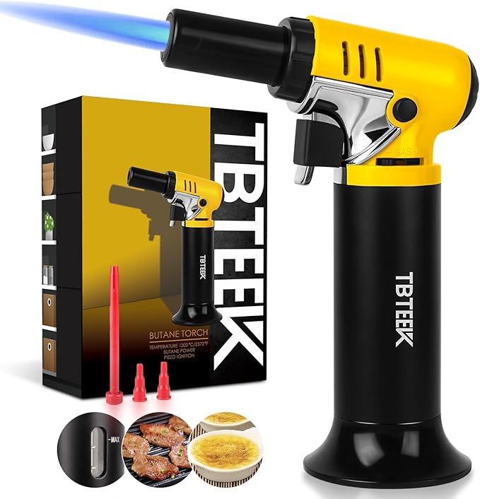 TBTeek Butane Torch with Fuel Gauge T907, One-hand Operation Kitchen Torch Lighter with Adjustable Flame for BBQ, Baking, Brulee Creme, Crafts and Soldering(Butane Gas Not Included)