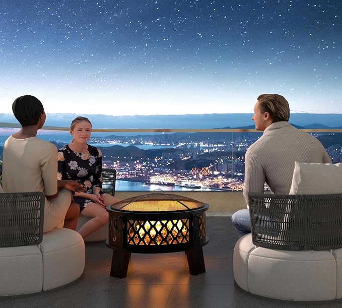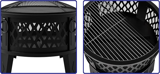 - Enhanced Safety Design:Equipped with a reinforced steel grate and interlocking spark screen, this fire pit is engineered to minimize ember escape during use. The elevated base design helps protect ground surfaces, while heat-resistant handles allow secure repositioning — ideal for households prioritizing outdoor safety.