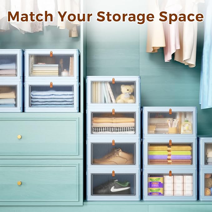 - Easy to Use and Foldable - The plastic storage bins are easy to assemble without tools, you can stack storage boxes and assemble them into a bedding organization, clothes organizer or shoe storage cabinet etc. When not in use, the storage boxes can be folded to take up little space in your home or cars