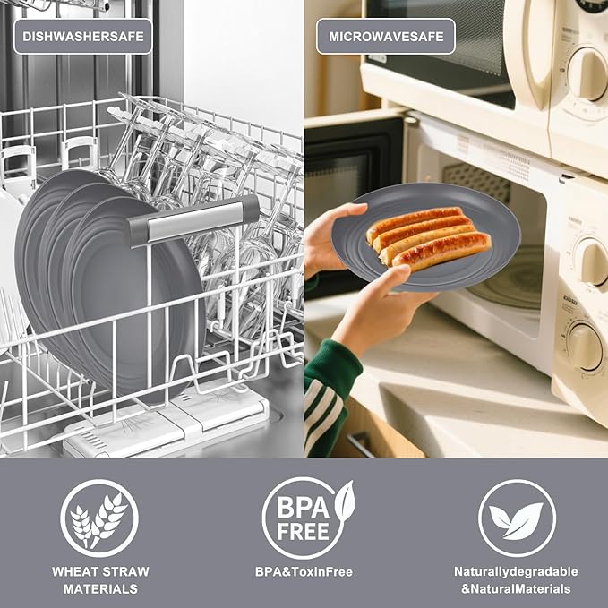 - Package Contents:Dark gray wheat straw dinnerware sets can serve 6 guests.The unique color will bring you and your family and friends a different usage experience,and plate sets will become the eye-catching presence on the dining table.