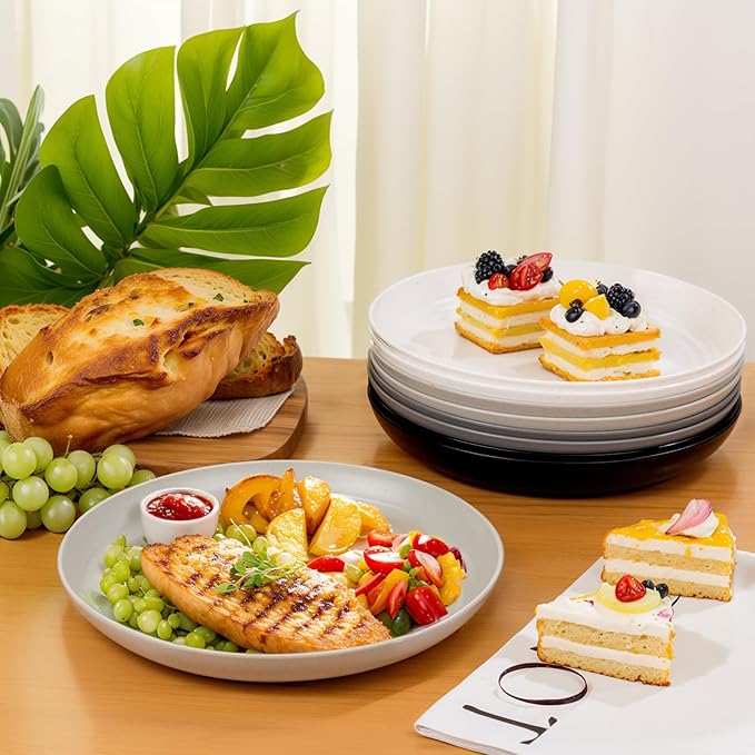 - Colorful: The reusable plastic plates set includes four versatile colors—white, light gray, dark gray, and black—with four plates of each. These colors easily complement any table setting and adapt to various occasions.