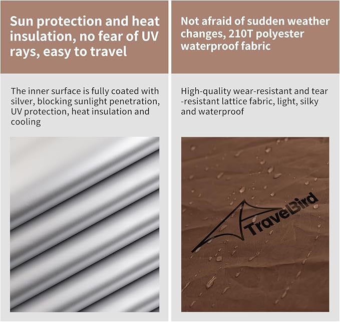 - ✅【Unique Sun-proof Design & 360° Anti-Mosquito Protection】Enjoy the sun while staying protected with our silver-coated inner surface, which blocks sunlight and UV rays. Our waterproof fabric can withstand light rain, and our high-density mosquito net features 48 holes per inch, providing effective protection from mosquitoes and insects.