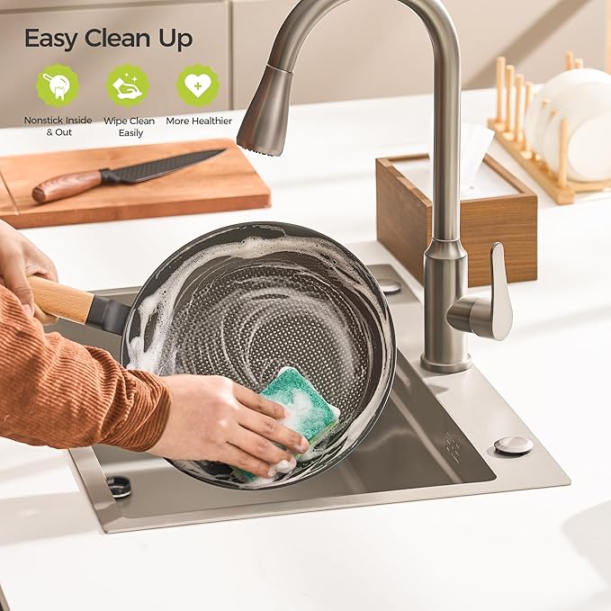 - Healthy Non-Stick Cooking:The YUTANN cast iron skillet set features a unique waffling pattern that locks in oil droplets, reducing the need for excess oil and ensuring healthier, low-fat cooking. The non stick coating is free of harmful chemicals like PFAS and PFOA, offering a toxin-free, non-stick surface that makes every meal healthier and cleanup a breeze.