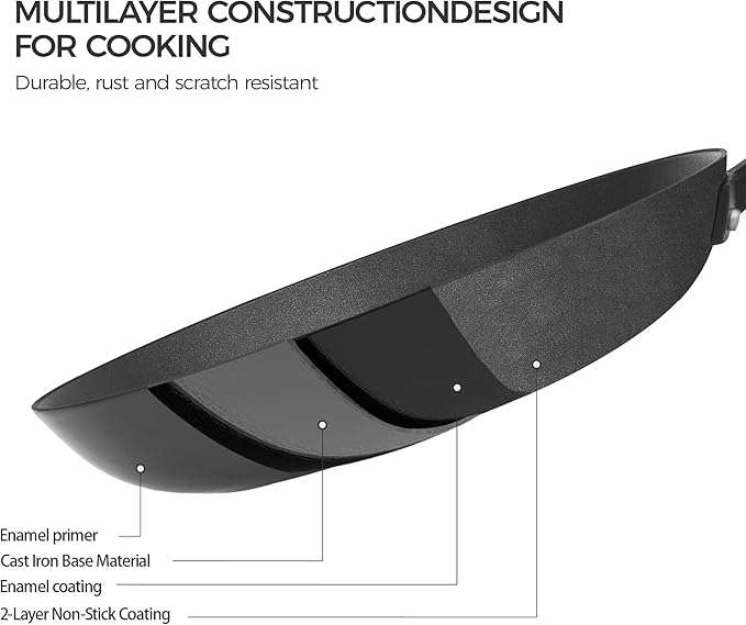 - Versatile Cooking & Easy Maintenance:This skillet is perfect for frying, sautéing, baking (up to 500°F), and grilling, making it ideal for various cooking techniques. Its pre-seasoned surface and non-stick properties make cleaning effortless, while its long-lasting enamel coating reduces wear and tear. It’s a must-have tool for any kitchen, from beginners to professional chefs.