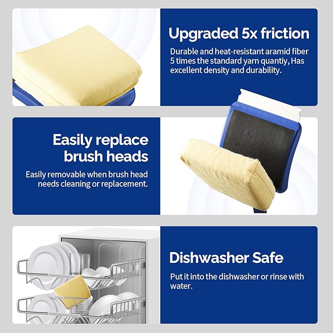- 【Safest Steam Brush 】With a safe heat-resistant Aramid Fiber Twill Pad ,There are no dangerous wire bristles or spikes to break off and get into the food.Dipped the brush in water,cleans with steam,The carbonized residue vaporized in a puff of steam