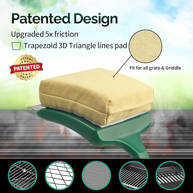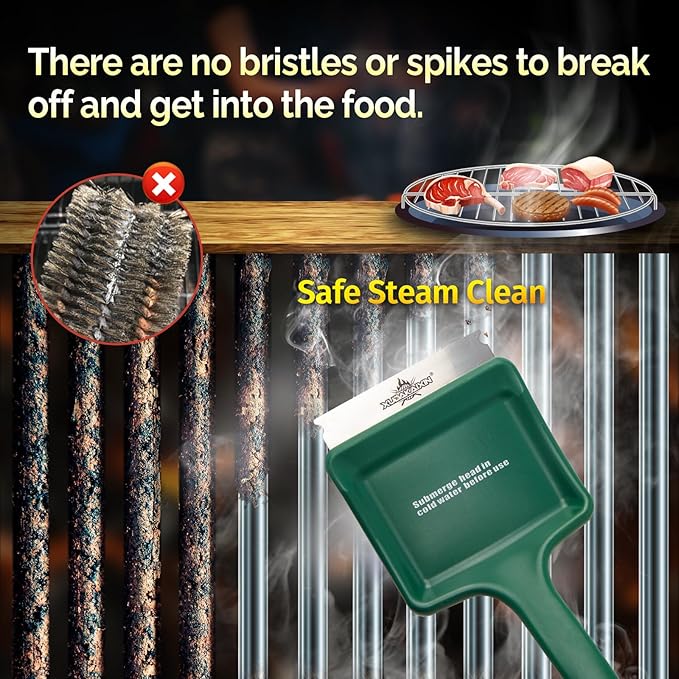 - 【Safest Steam Brush 】With a safe heat-resistant Aramid Fiber Triangle Lines Pad ,(Patent Pending)There are no dangerous wire bristles or spikes to break off and get into the food.Dipped the brush in water,cleans with steam,The carbonized residue vaporized in a puff of steam.