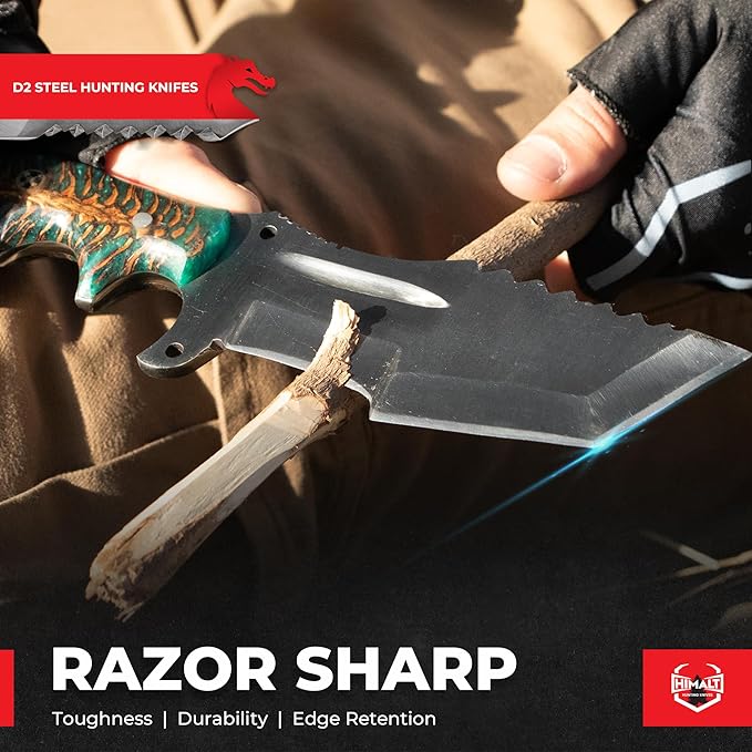 - Hand Forged Hunting Gear: Our D2 Blade is hand patented and is heat-treated and has a hardness of 58-60 HRC So Our hunting knives can take anything and everything i.e., camping, hiking, fishing, or any outdoor task.