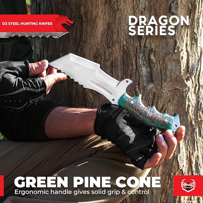 - Ergonomic Pine Cone Acrylic Resin Handle: Our D2 tracker bushcraft knife has ergonomic Pine Cone Acrylic Resin handle that fits perfectly in your hand and gives a firm hand grip.